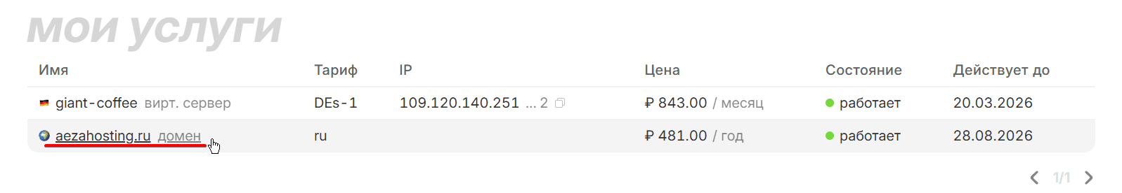 Нажимаем на название домена чтобы перейти на её страницу: