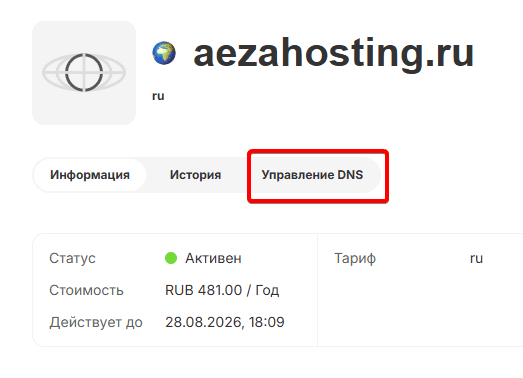Подключение домена, купленного в Aéza