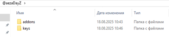 После чего переместим папки addons и keys в отдельную директорию с названием нашего мода через @.