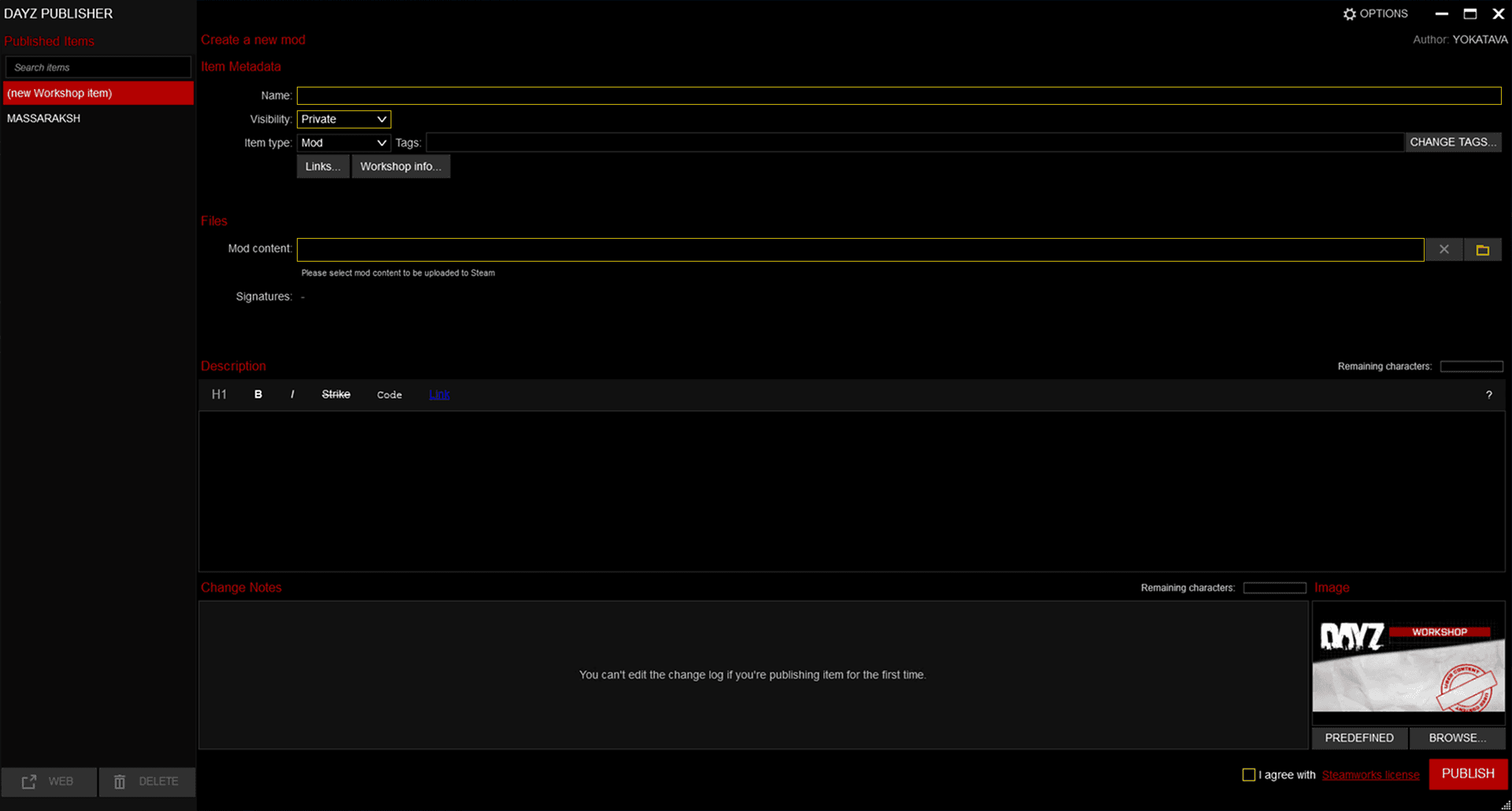 Перейдём к финальной части и выложим наш мод в мастерскую Steam. Откроем Publisher, где необходимо будет: