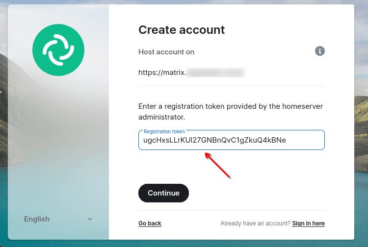 Затем необходимо будет ввести регистрационный токен, который указан в конфиге: