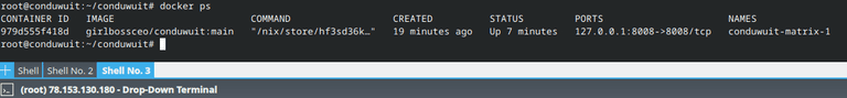 После выполнения конфигурирования сервера, выпуска SSL-сертификата и развертывания прокси-сервера мы можем запустить наш docker-контейнер с Conduwuit.