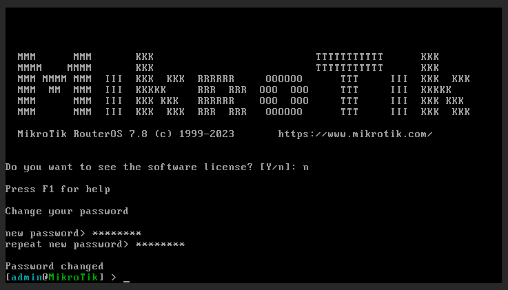 Готово. Образ MikroTik CHR развернут на виртуальном сервере и полностью готов к использованию.