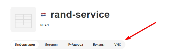 Для начала необходимо войти в VNC, это можно сделать в личном кабинете на странице услуги.