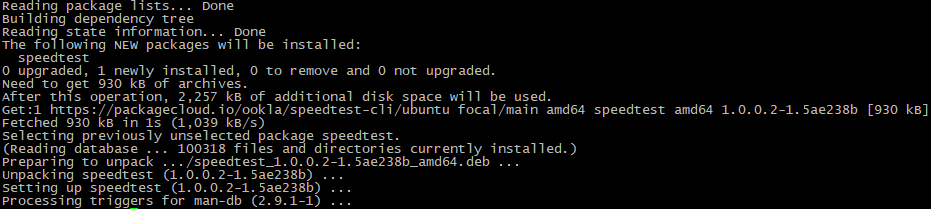 curl -s https://packagecloud.io/install/repositories/ookla/speedtest-cli/script.deb.sh | sudo bashФайлы успешно загружены.
