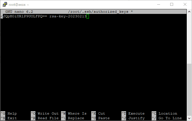 После неё перед нам откроется пустой текстовый файл, в который необходимо скопировать ранее созданный публичный ключ: