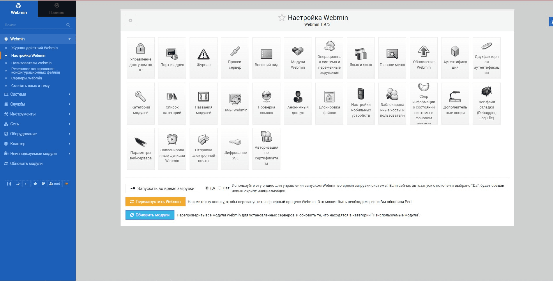 - Модульность: Webmin состоит из модулей, которые можно установить и удалить по мере необходимости.