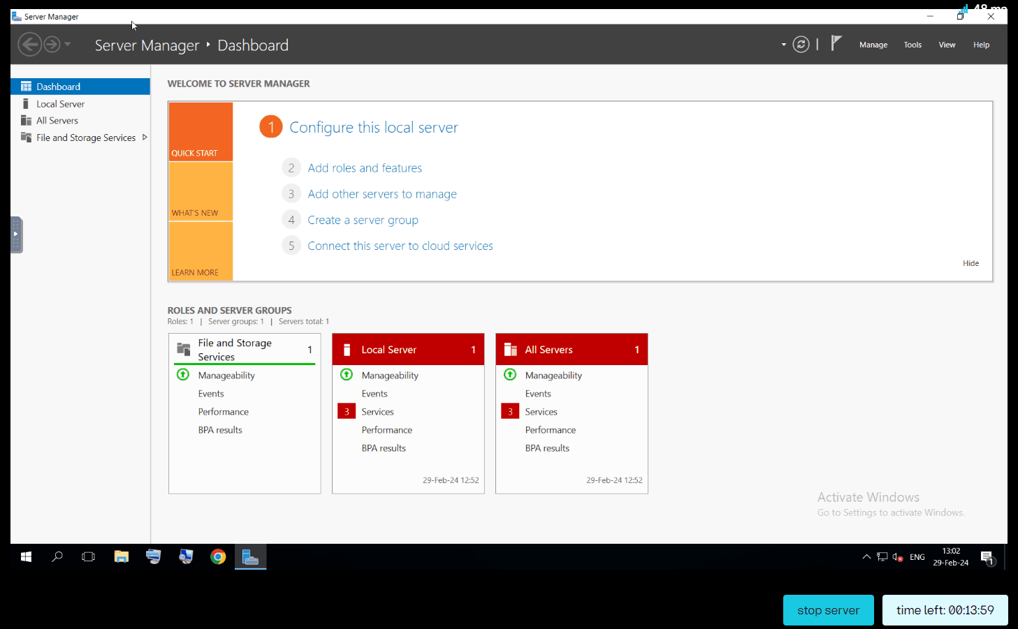 1.3. Через несколько секунд сервер будет готов и мы увидим окно удаленного рабочего стола Windows Server. В системе изначально предустановлен минимальный набор необходимого ПО для работы: текстовый редактор Notepad++, браузер Google Chrome и архиватор WinRAR.