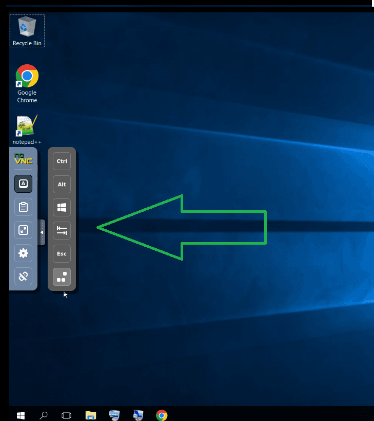 Также заметим, что для выполнения некоторых действий Вам может понадобиться, например, отправить на сервер сочетание клавиш Ctrl + Alt + Del, для этого вы можете воспользоваться панелью инструментов VNC панели нажав на иконку стрелочки с края экрана.