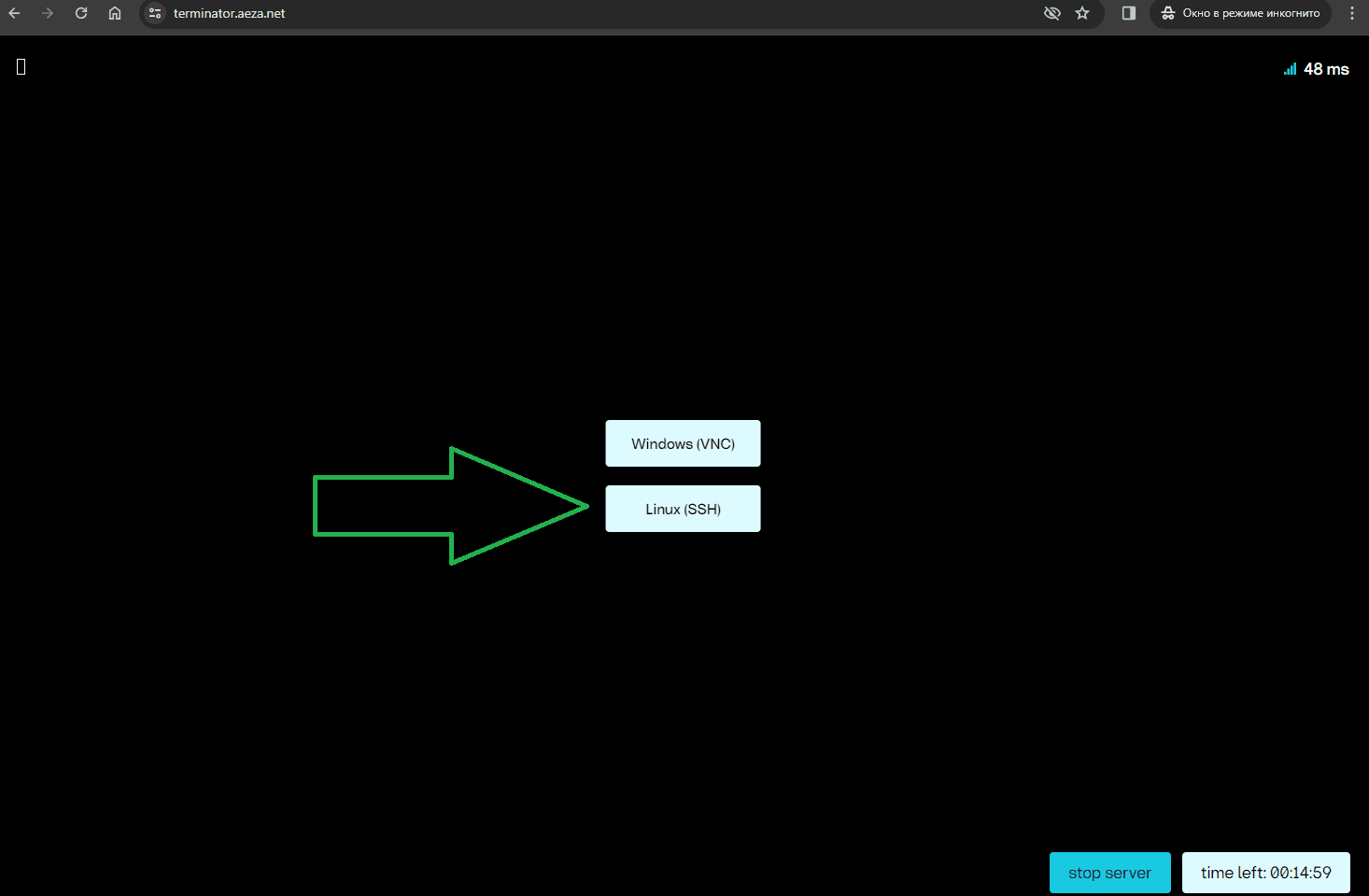 1.1. Откроем браузер и перейдём по ссылке: terminator.aeza.net